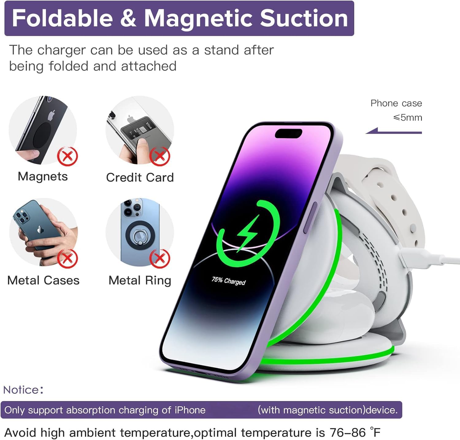 Experience the ultimate convenience and safety with our 3 in 1 Wireless Charging Station! Order now and declutter your charging space!