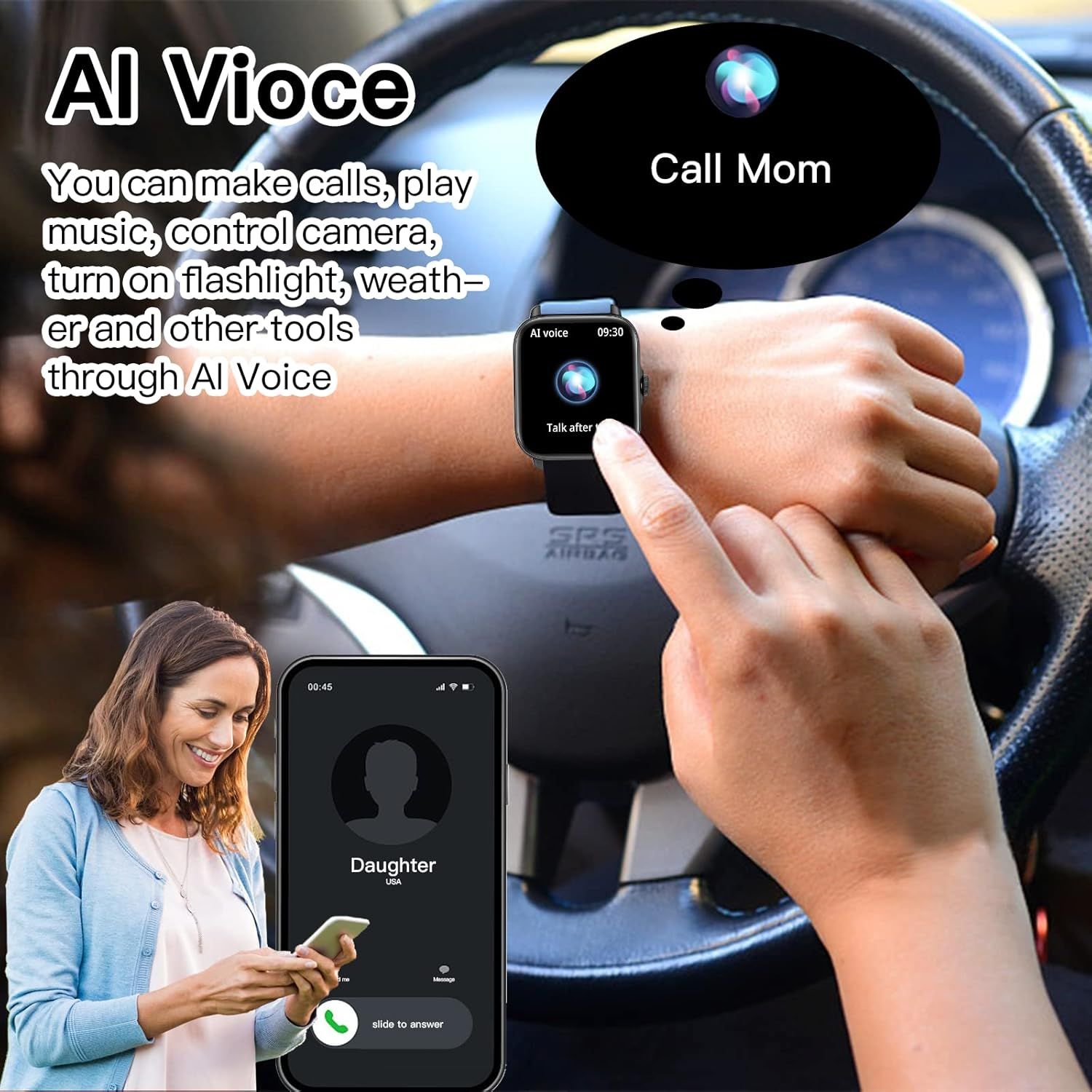 ?AI Voice Control & Large Capacity Battery?AI voice control fitness watch and mobile phone, long press to say your order, you can make calls, control camera, music, mobile photo album, TikTok and other applications to facilitate your life; 235mAh large capacity battery, low power consumption, 10 days standby, 2-3 days of daily use, long-lasting battery life.