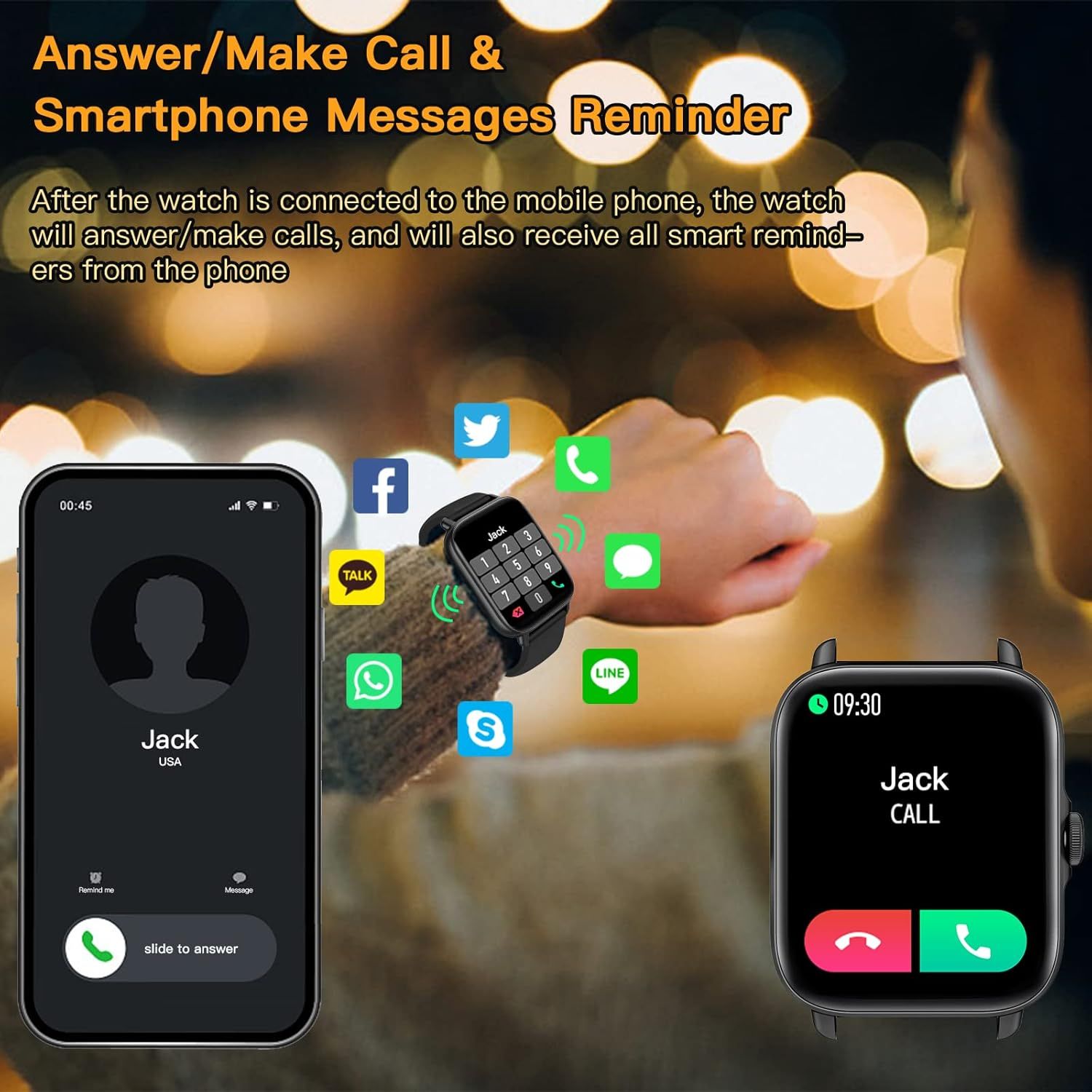 ?????Make & Answer Calls & Smart Notifications?: The newly designed smart watch for phone calls in 2022, after connecting to Bluetooth, you can make/answer calls, high-quality Bluetooth will bring you clear call experience (can set ringtones or vibrations, add 8 contacts and view call logs); The smart watch can set notification reminders, receive calls, messages, Facebook, WhatsApp, etc. Real-time notification, you will not miss any important information when your phone is not around.
